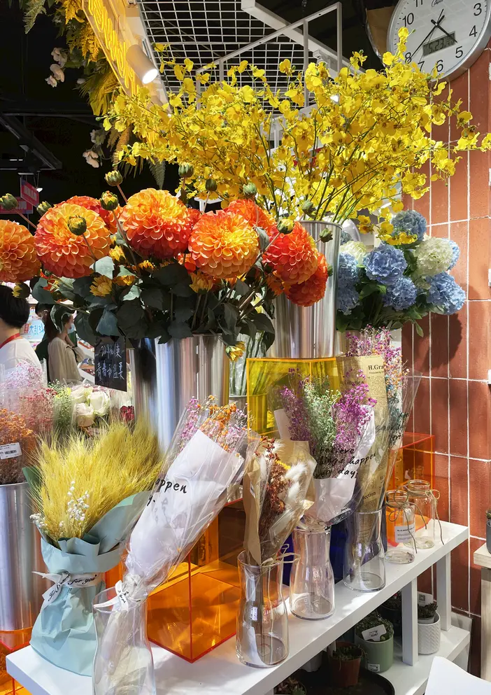 向日葵、百合花、蘭花、火烈鳥百合、菊花、玫瑰花等。