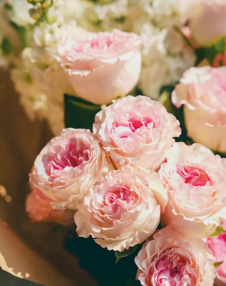 清晨帶露的玫瑰剛從花田抵達,每片花瓣都藏著朝陽的溫度。 紅玫瑰熾烈如告白,粉玫瑰溫柔似私語,白玫瑰純粹若初心。 搭配尤加利葉的清冽,系上奶油色絲帶,把說不出的悸動,都藏進這束會呼吸的浪漫裏。